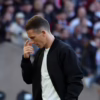 Sofort wurden Erinnerungen wach an den 17. April 2025: Im Europa-League-Viertelfinale gegen Tottenham Hotspur prallte Kaua Santos heftig mit James Maddison zusammen. Daraus resultierte nicht nur der Strafstoß, der Frankfurts Aus im Europapokal besiegelte, der Torhüter erlitt obendrein einen Kreuzbandriss im rechten Knie. Der Brasilianer entschied sich für eine konservative Therapie, weshalb er bereits im Herbst ins Tor zurückkehren konnte.